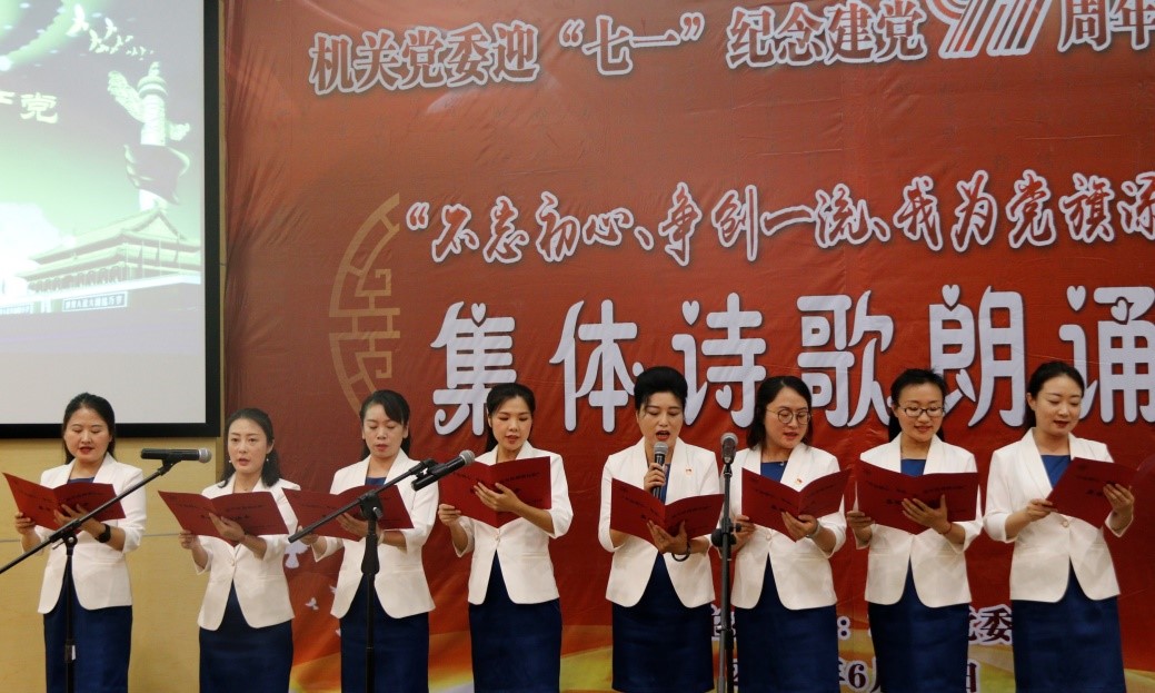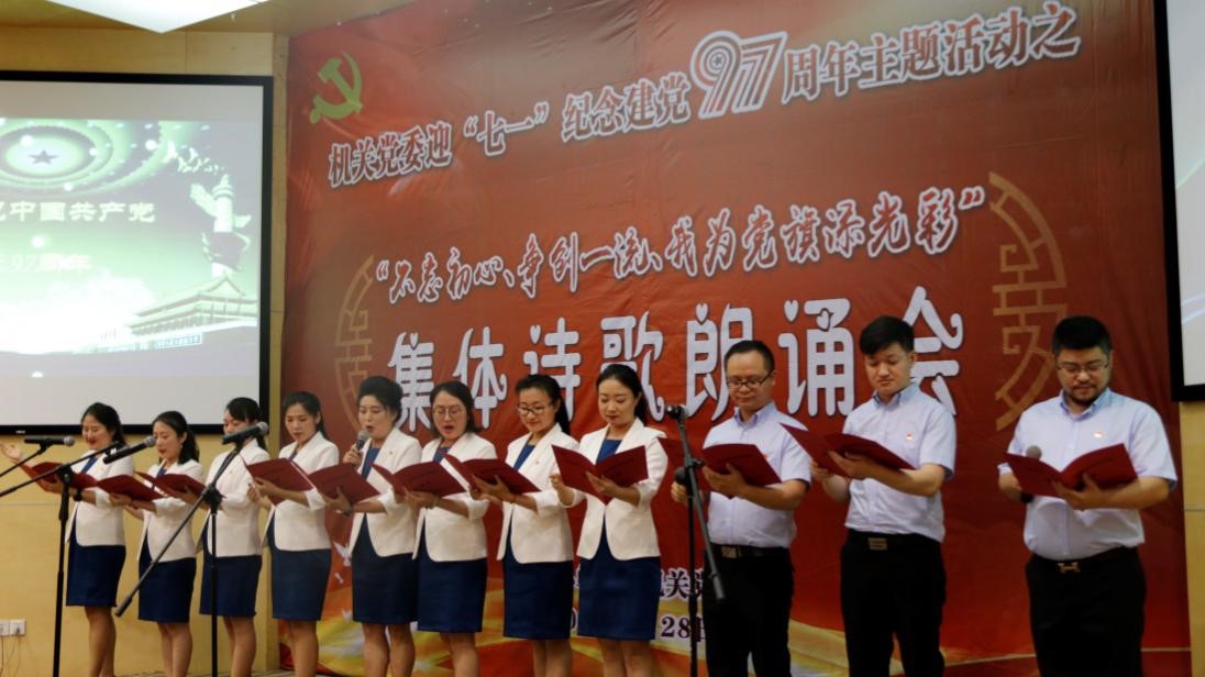 为庆祝中国共产党成立97周年,多种形式地贯彻落实中央“两学一做”教育制度化常态化的要求,促进学习型党组织建设,强化广大党员同志的责任感与使命感,01365.com于2018年6月28日开展了“不忘初心、争创一流、我为党旗添光彩”集体诗歌朗诵会。