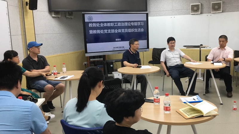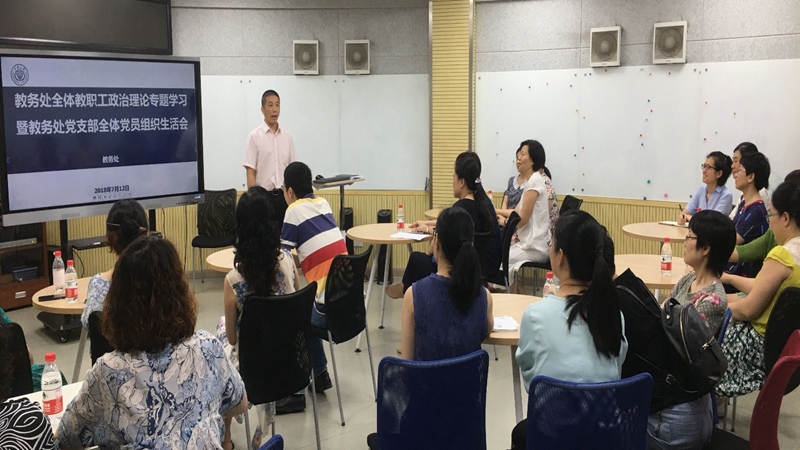 7月12日下午,教务处全体教职工政治理论专题学习暨教务处党支部全体党员组织生活会在教师教学发展中心多媒体教室举行,廖瑞金副校长、李正良处长出席会议,教师教学发展中心付红桥副主任主持了会议,教务处全体人员参加了本次会议。