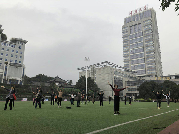 “工间操开始啦!”。11月17日上午10点,办公楼、主教、国际会议厅等办公区域的机关干部职工走出办公室来到团结广场依序站好,伴随着第九套广播体操和第一套戏曲广播操音乐,开始了工间操活动。良好的精神风貌、整齐划一的动作,不时的吸引行人驻足观看,成为校部机关的一道靓丽风景。